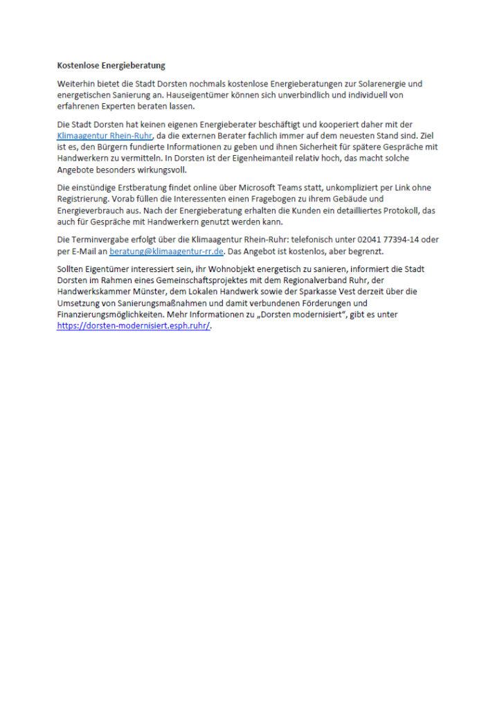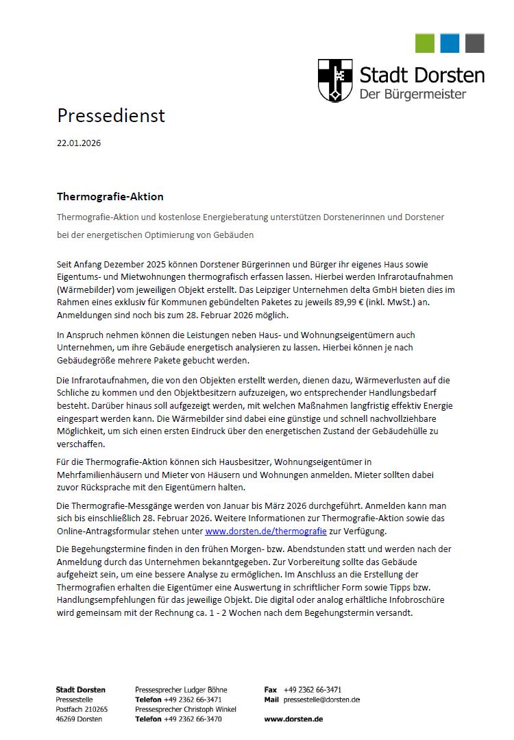Pressemitteilung der Stadt Dorsten vom 22.01.2026: