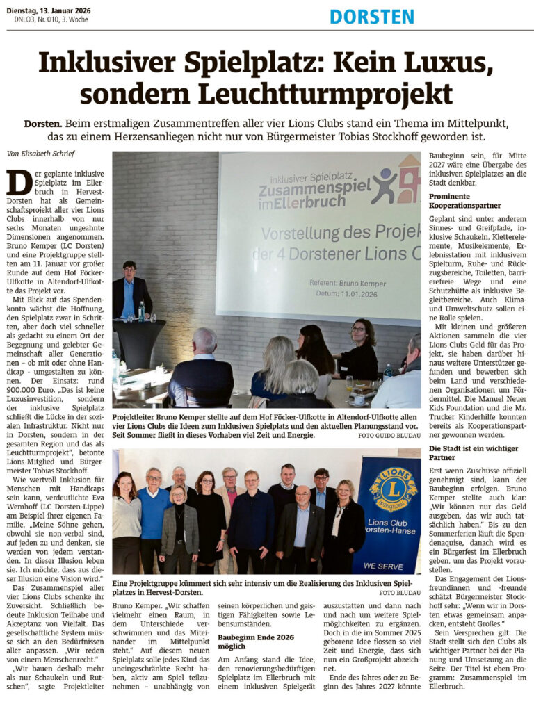 Inklusiver Spielplatz als Gemeinschaftsprojekt der vier Dorstener Lions Clubs und der Stadt Dorsten